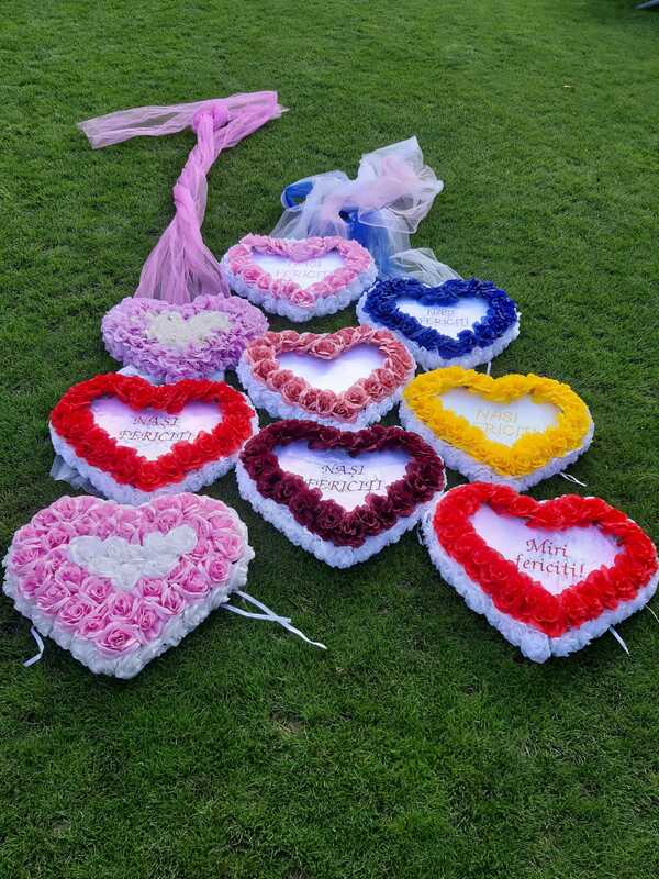 Dimensiune: 55/55 cm; 2 culori; tull de 3 metri fiecare; flori din mătase; Nu se decolorează în caz de vreme nefavorabilă.
