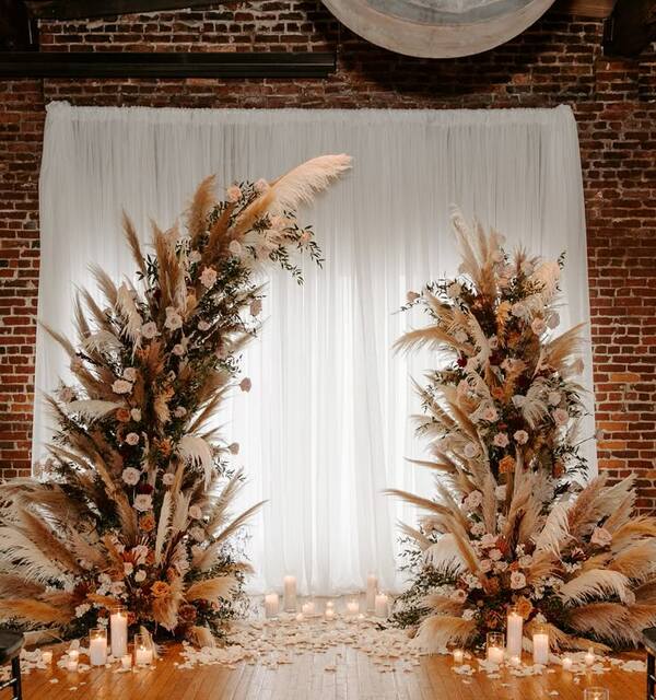 ARCADA DUBLA DECORATA CU FLORI CONSERVATE NATURALE SI PAMPAS ALB NATUR