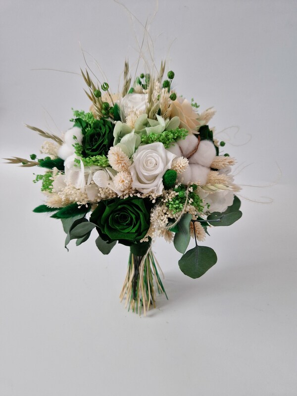 Buchet realizat cu flori naturale criogenate/uscate. Pretul variaza in functie de numarul trandafirilor