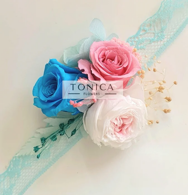 Bratara cu trandafiri criogenati mici. Bratarile sunt lucrate cu flori naturale uscate si stabilizate. Pretul este pe bucata. Dimensiunea ≃ a trandafirului: ⌀2.5-3 cm si H2-2.5cm Bratara este realizata pe panglica. Cromatica poate fi aleasa in functie de preferinte. Florile nu necesita ingrijire avand o durata lunga de viata. Bratarile sunt unicat, nu pot fi 2 identice 100%. Florile pot diferi in functie de disponibilitatea stocului.