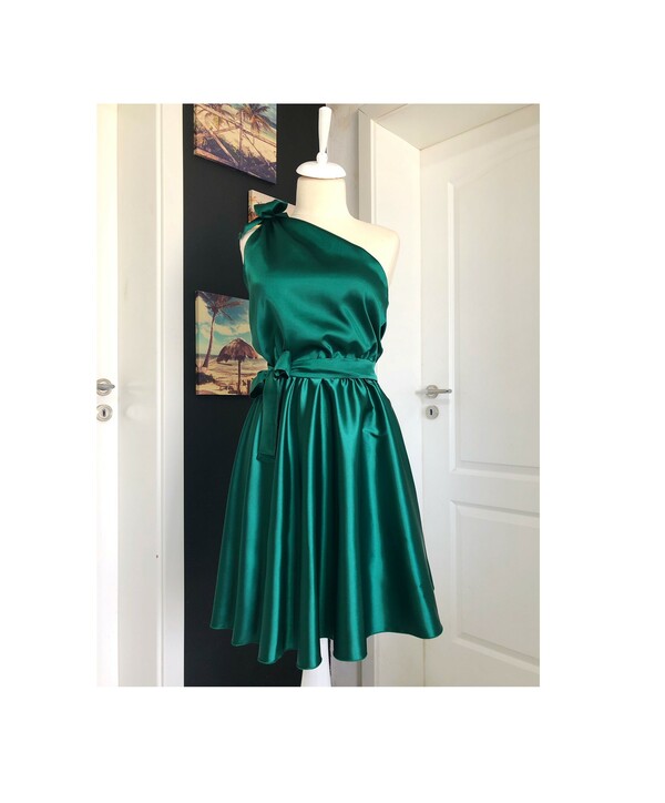 Rochie Pe o Parte Scurta Satin RPP006 Rochie pe o parte cu prindere pe umar , Scurta din material Satin Premium. Se poate executa si in culori albastru, roz, verde, bordo, mov, lila,rosu,roz prafuit, albastru regal etc. Lungimea fustei din talie este de 50 cm. Rochia face parte din categoria rochii . Pentru culori diferite fata de cele postate se pot stabili in mesaj pe whatap alaturi de un reprezentant AC Creations!