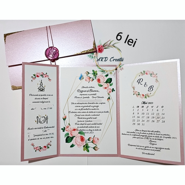 Doresc să aflu mai multe informații despre Invitație nuntă roz, in 3 părți cu codul #AKDIN0110