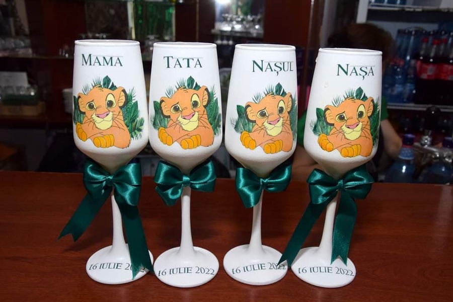 Produsele sunt realizate la comandă și sunt personalizate 100%. Termenul de livrare se calculeaza de la momentul confirmării design-ului grafic de către prestator. Material pahare: sticlă. Prețul este per bucată.