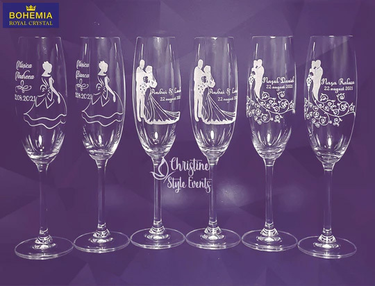 Pahare miri și nași de șampanie gravate, personalizate