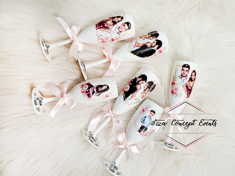 Produsele sunt realizate la comandă și sunt personalizate 100%. Termenul de livrare se calculeaza de la momentul confirmării design-ului grafic de către prestator. Material pahare: sticlă. Prețul este per bucată.