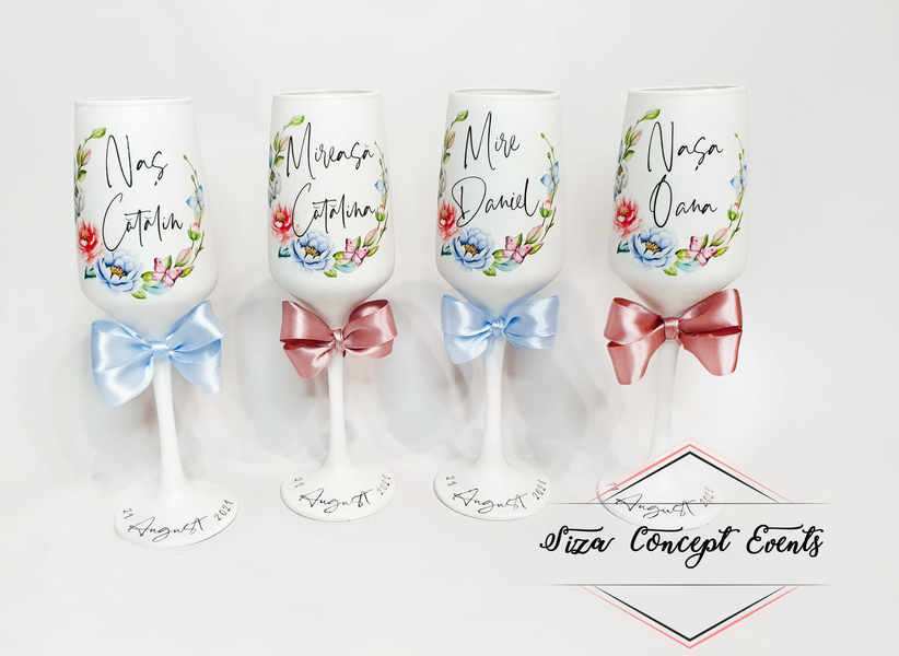 Produsele sunt realizate la comandă și sunt personalizate 100%. Termenul de livrare se calculeaza de la momentul confirmării design-ului grafic de către prestator. Material pahare: sticlă. Prețul este per bucată.