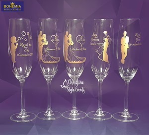 Pentru un plus de eleganță și pentru a ieși ușor in evidenta in ziua marelui eveniment, am creat paharele gravate cu reflexii aurii.