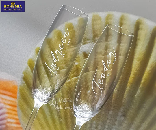 Pahare din cristal elegante personalizate prin gravură.