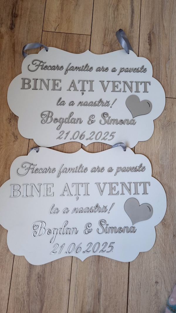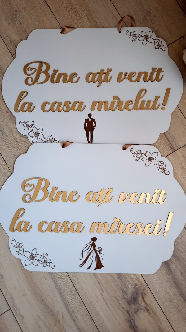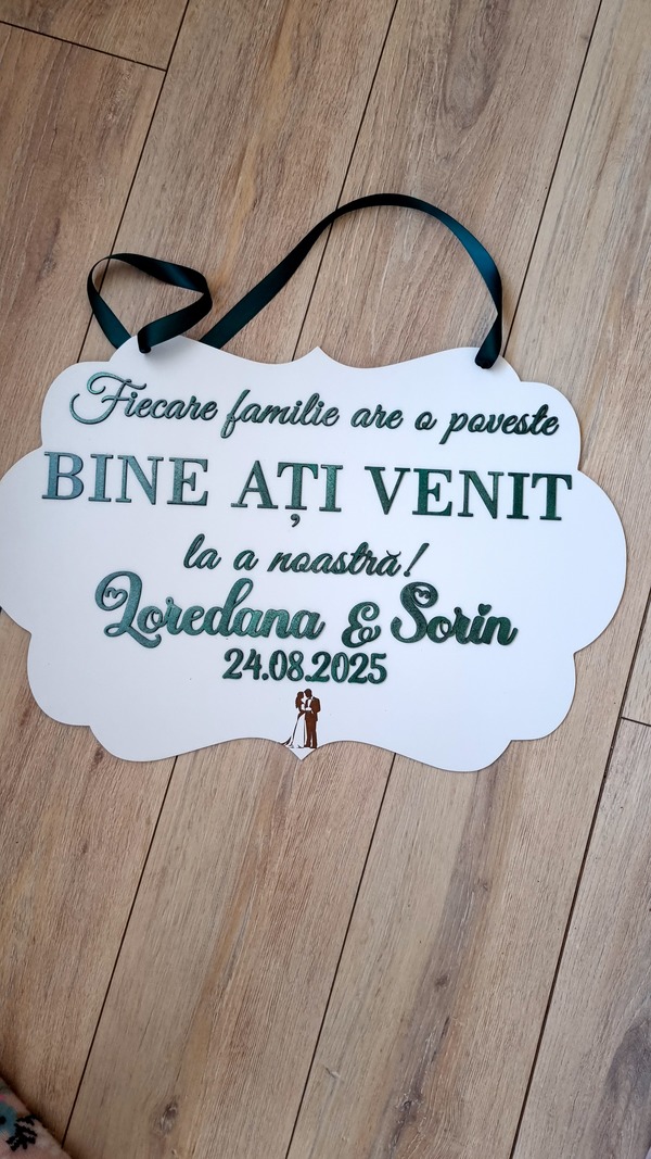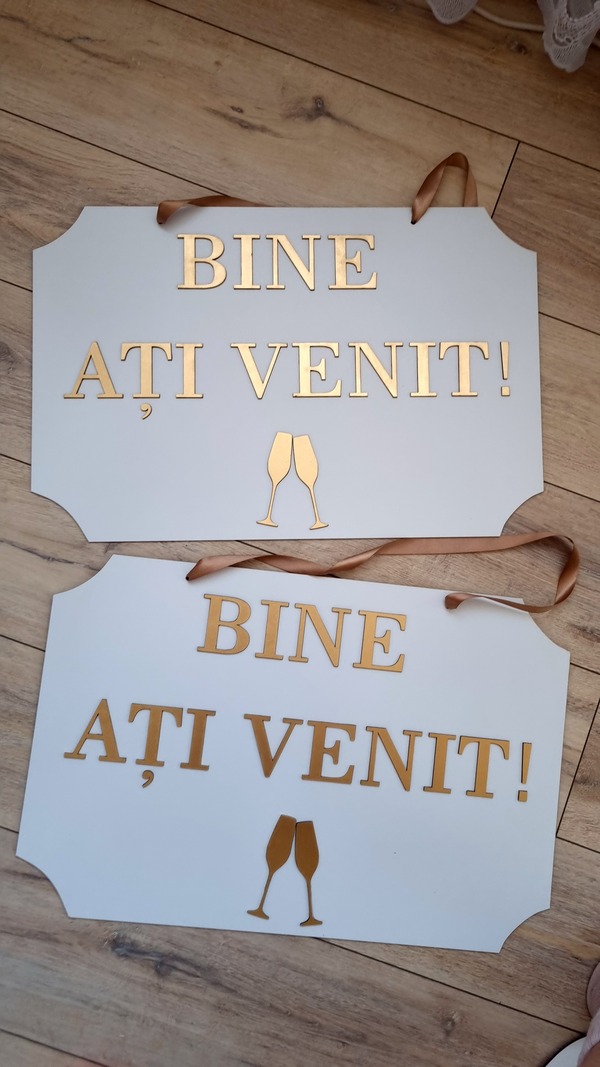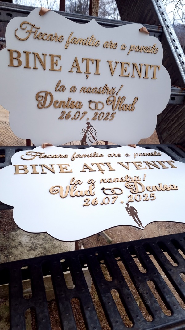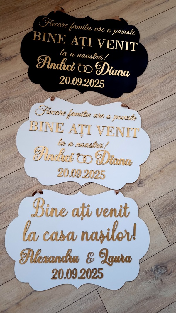 Fiecare pancartă este un accesoriu de impact, perfect pentru decor, fotografii și pentru a întâmpina invitații într-un mod elegant și memorabil!