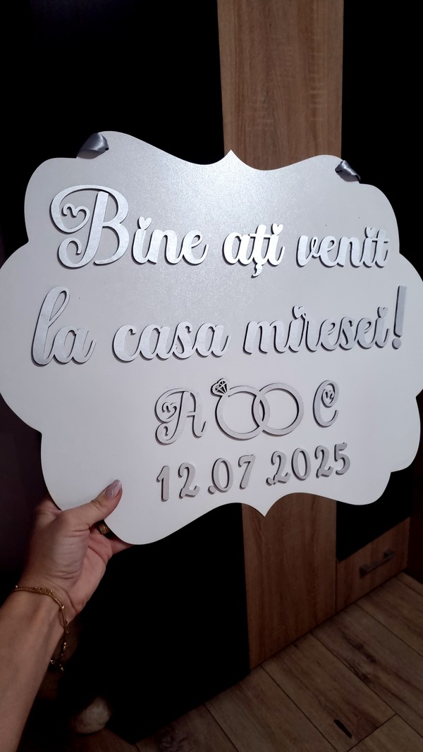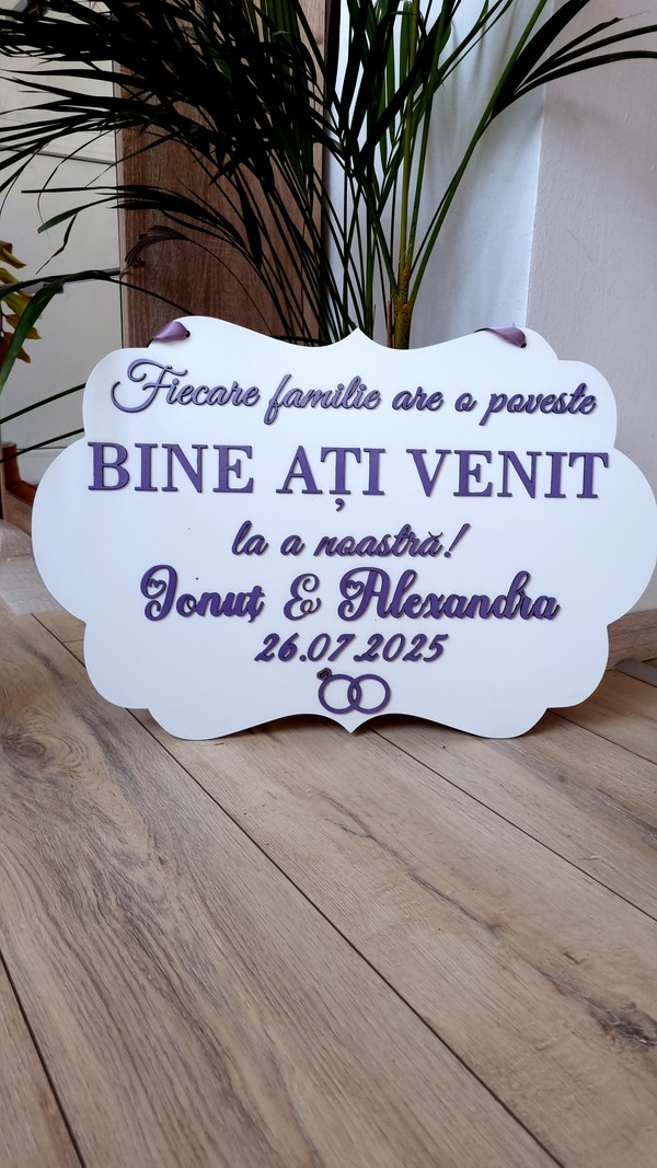 Adaugă un plus de stil și originalitate evenimentului cu pancartele noastre personalizate, realizate manual cu text în relief 3D. Fie că este vorba despre un mesaj de bun venit, un citat special sau orice alt text dorit, fiecare pancartă este creată cu atenție la detalii, în culori variate, pentru a se potrivi perfect tematicii tale.